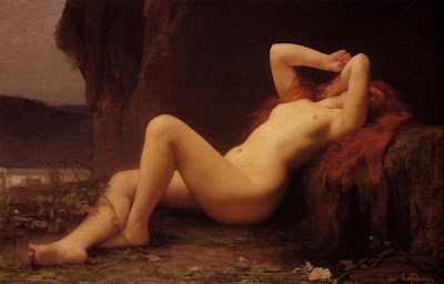 Image: Mary Magdalene in the Cave (Maria Magdalena in der Höhle), oil on canvas painting created in 1876 by French figure painter Jules Joseph Lefebvre (1836-1911) currently in private collection
