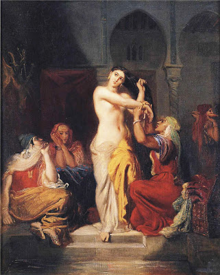 Scan of painting: ‘Moorish Woman Leaving the Bath in the Seraglio’ (1854) painting by French painter Theodore Chasseriau, oil on canvas, 67 cm x 54 cm, located in Musée des Beaux-Arts, Strasbourg, Germany.